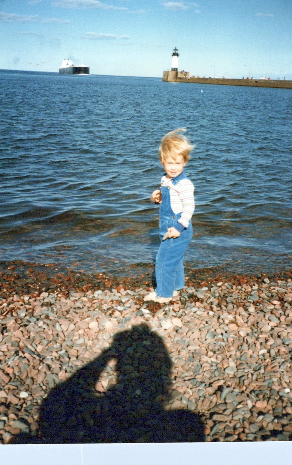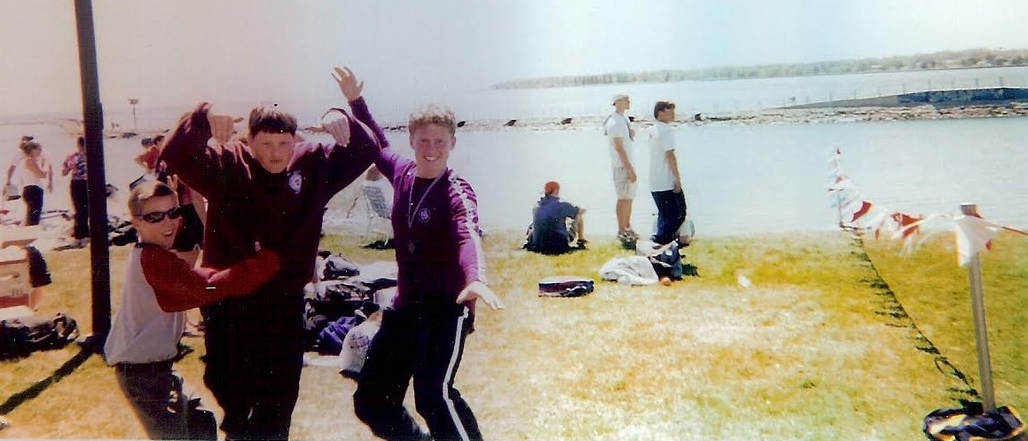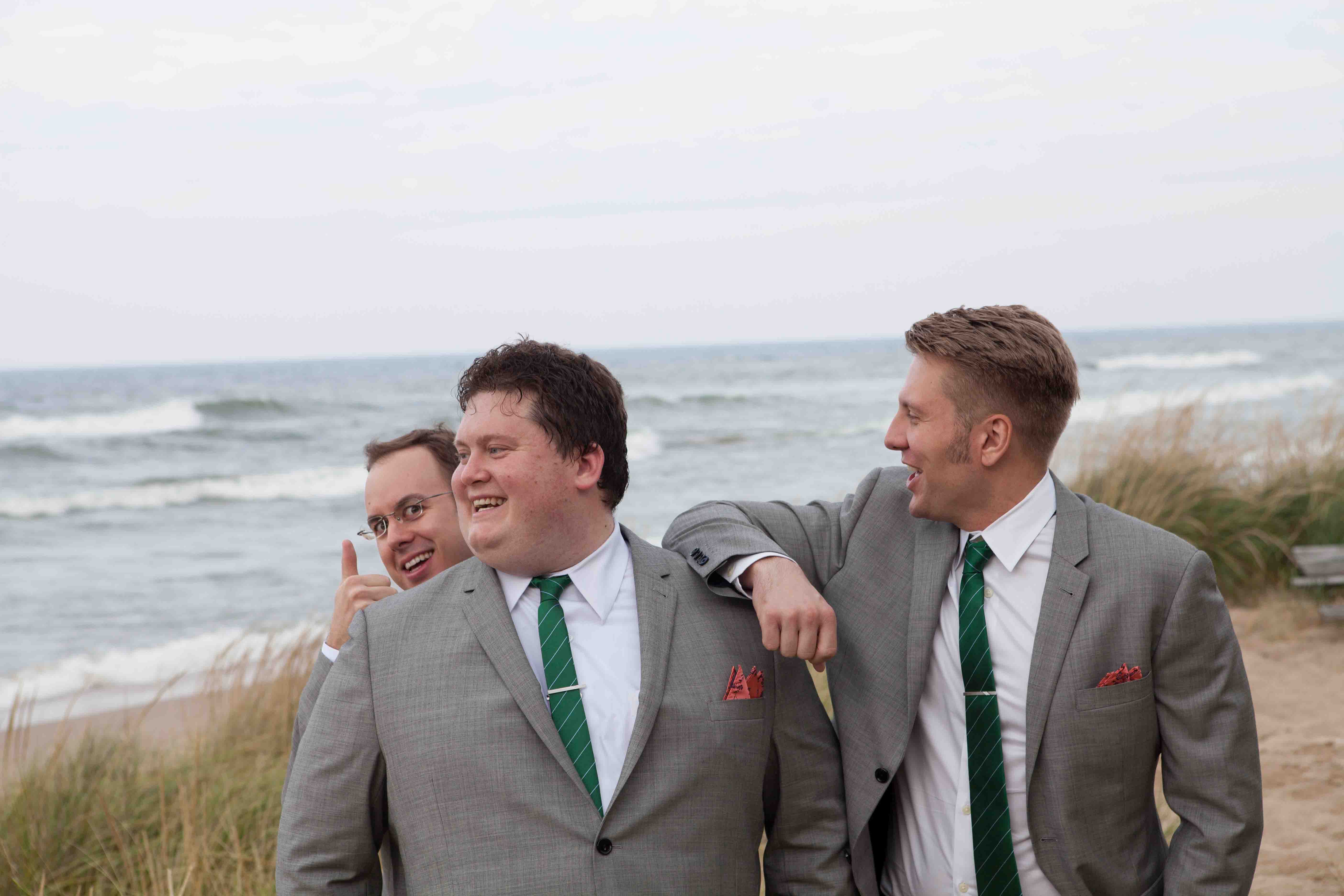 Mike and Peter (and Dave) on the Lake Michigan beach before Peter & Ashley's wedding