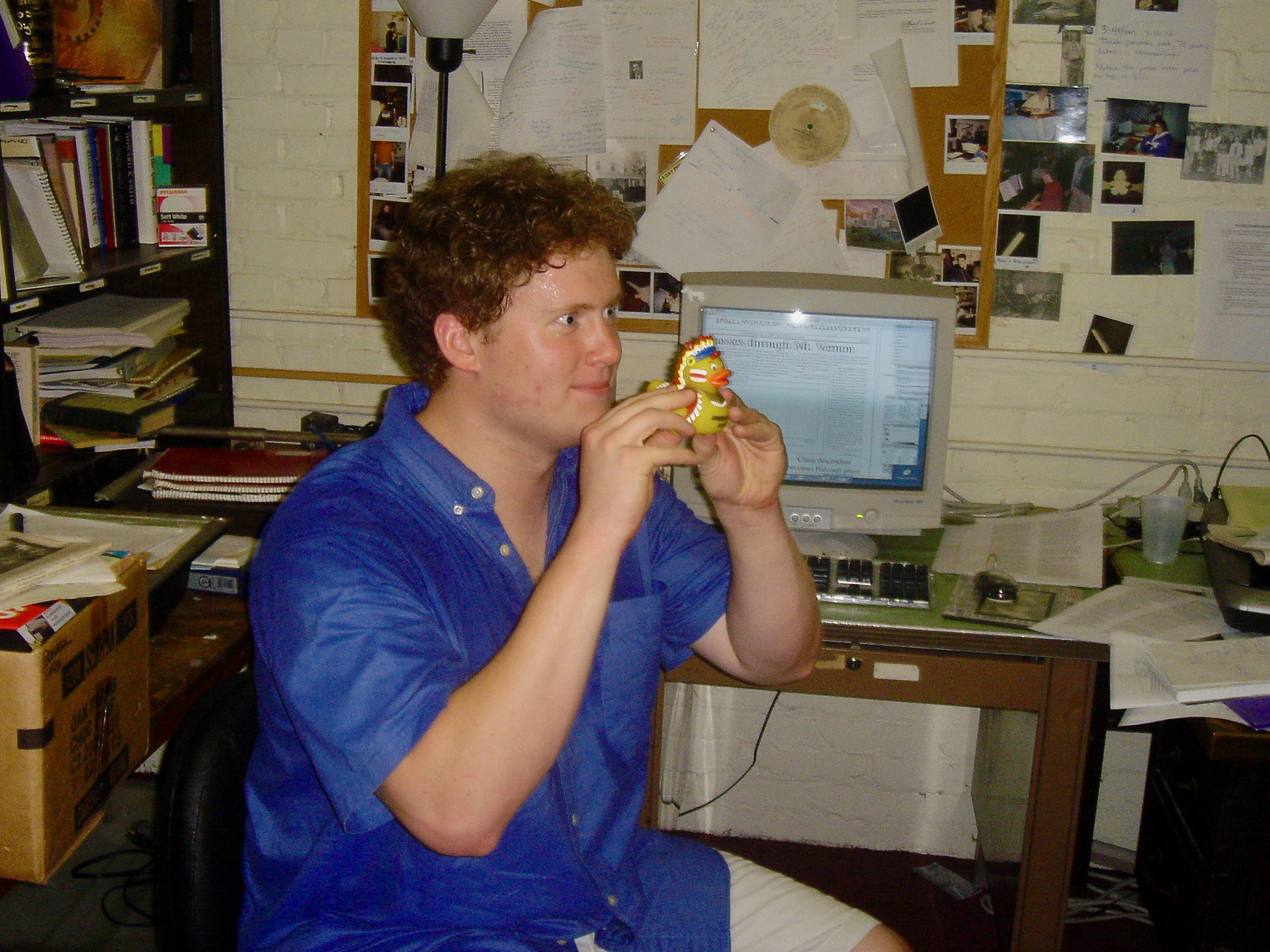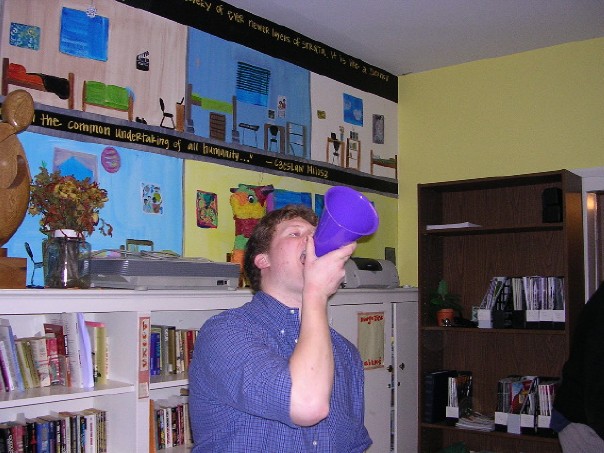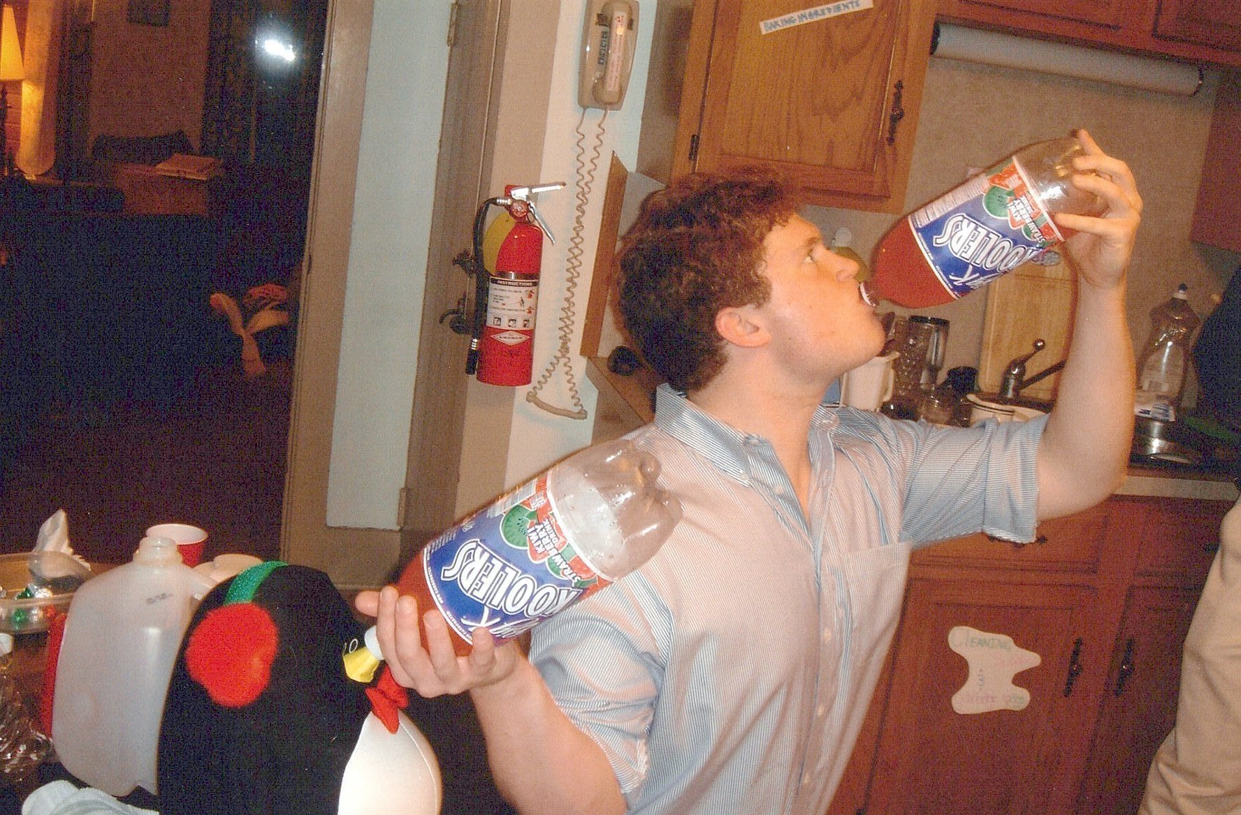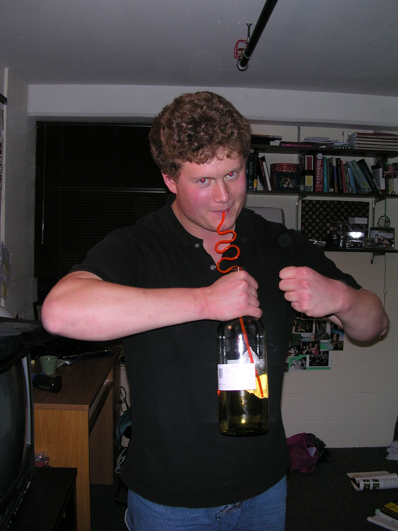 This is from a collection of photos of assorted Collegian folks drinking wine from twisty straws in my room in Caples.