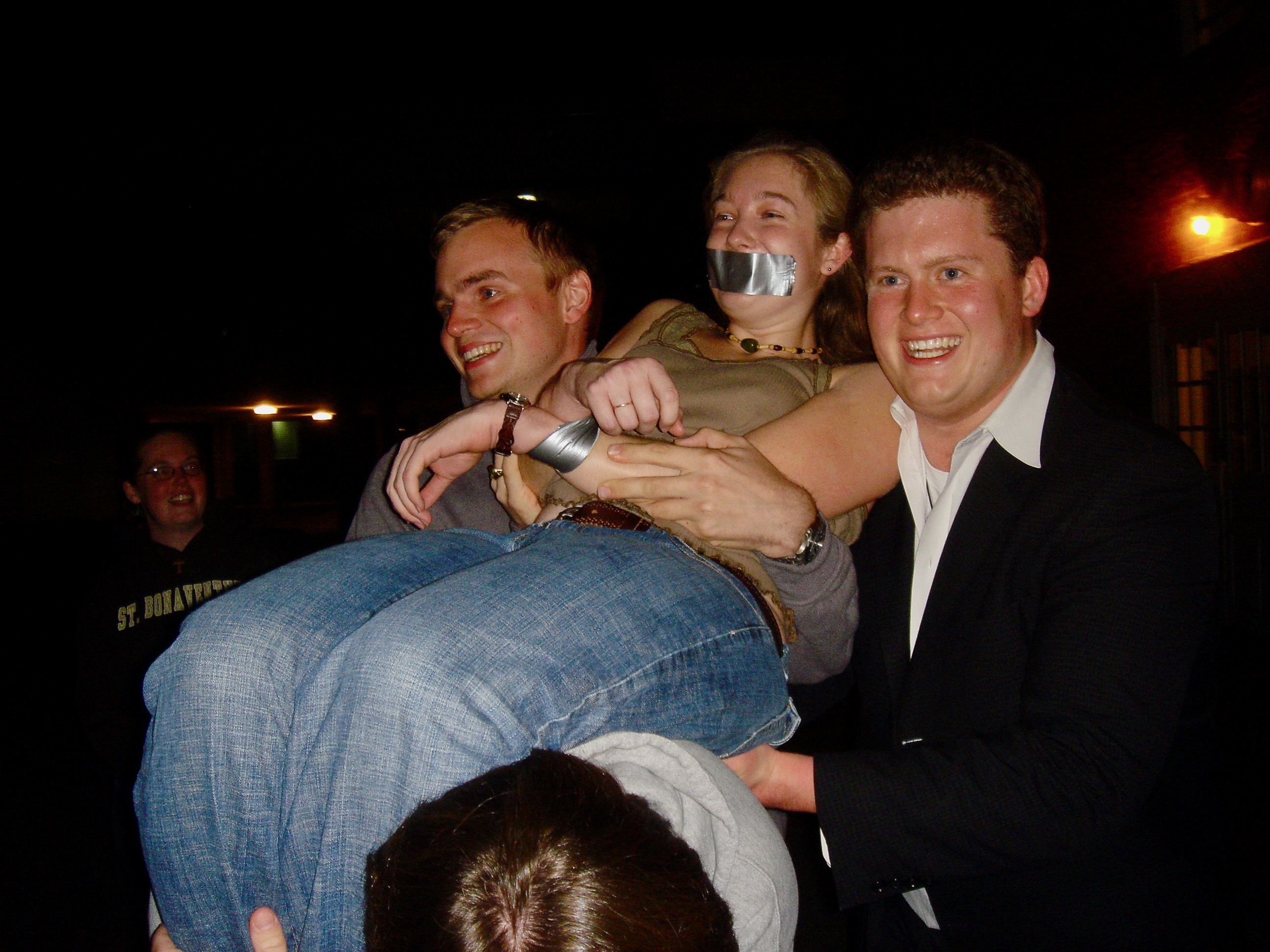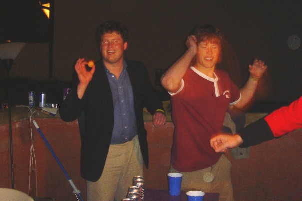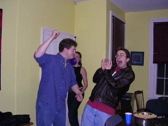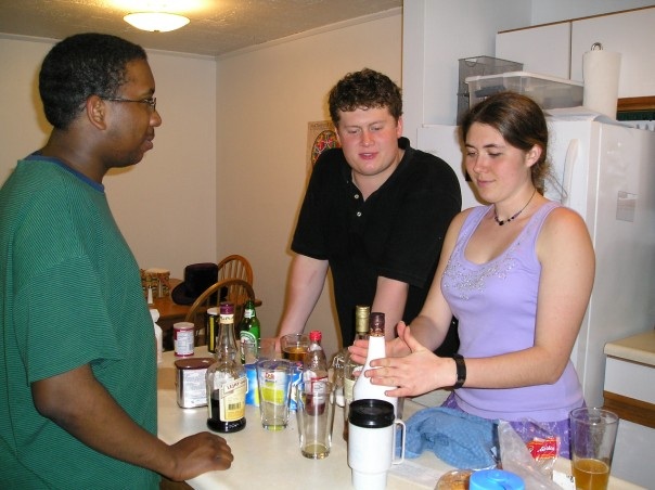 Bryan, Mike, & Willow, caressing the rum - senior week party at Kwiek's apartment