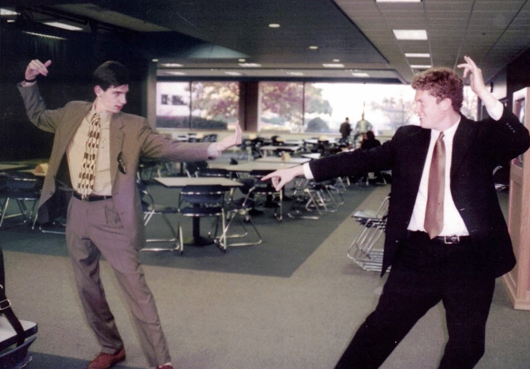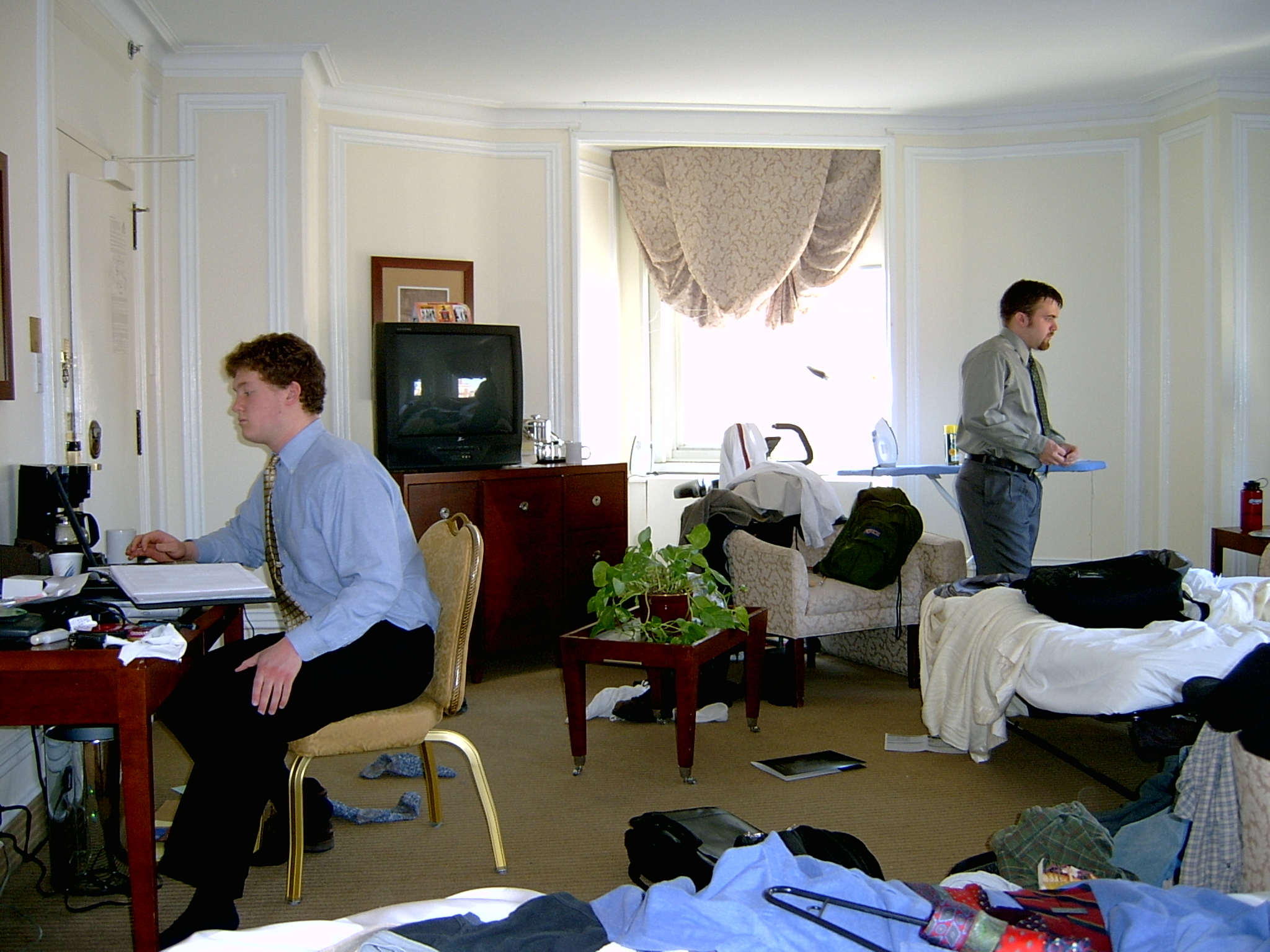 Mike and Pual in Dorm on move in with JPL doing god knows what on the laptop.