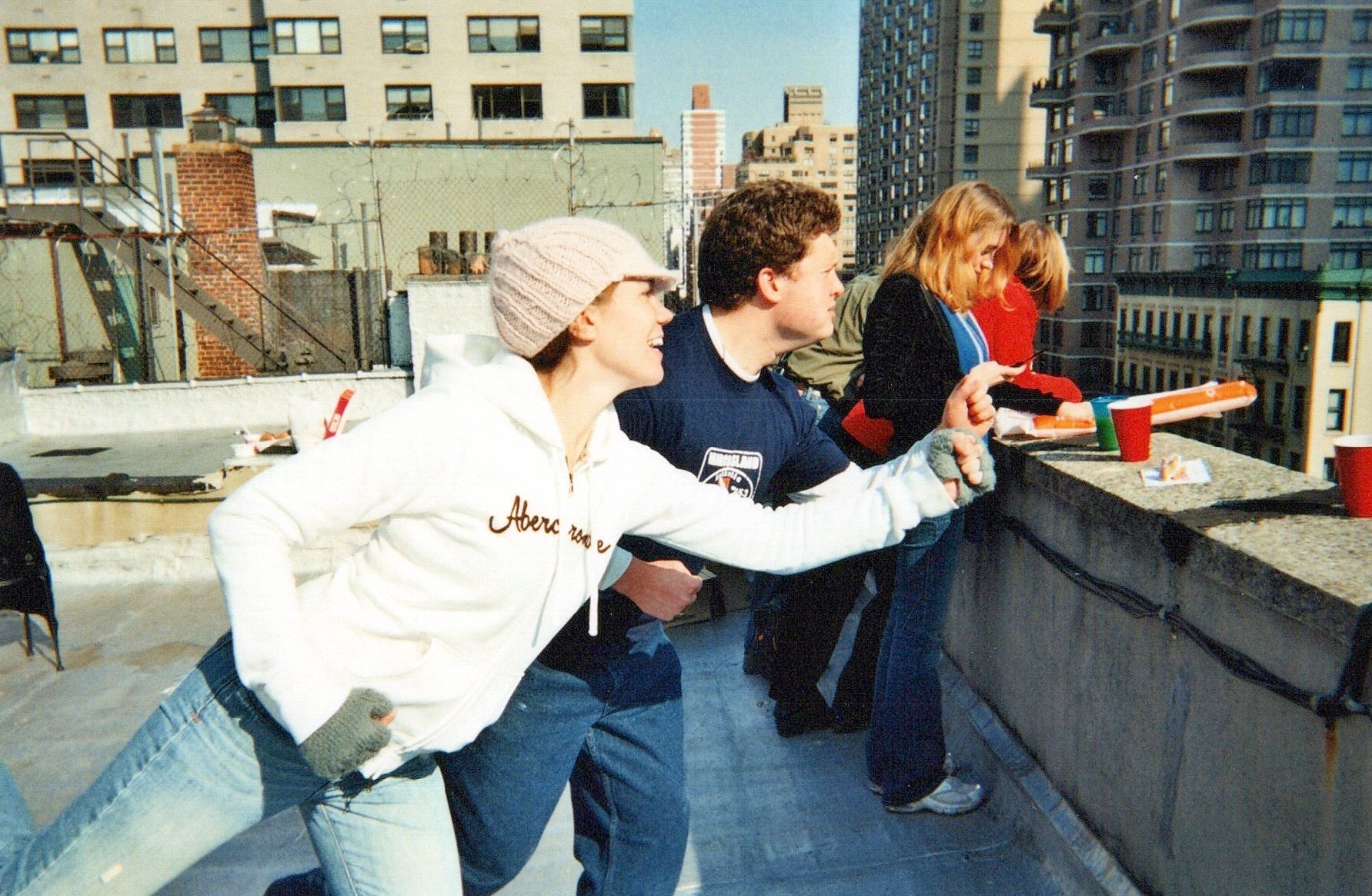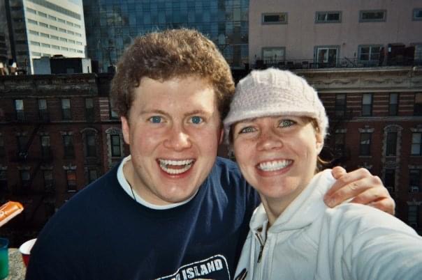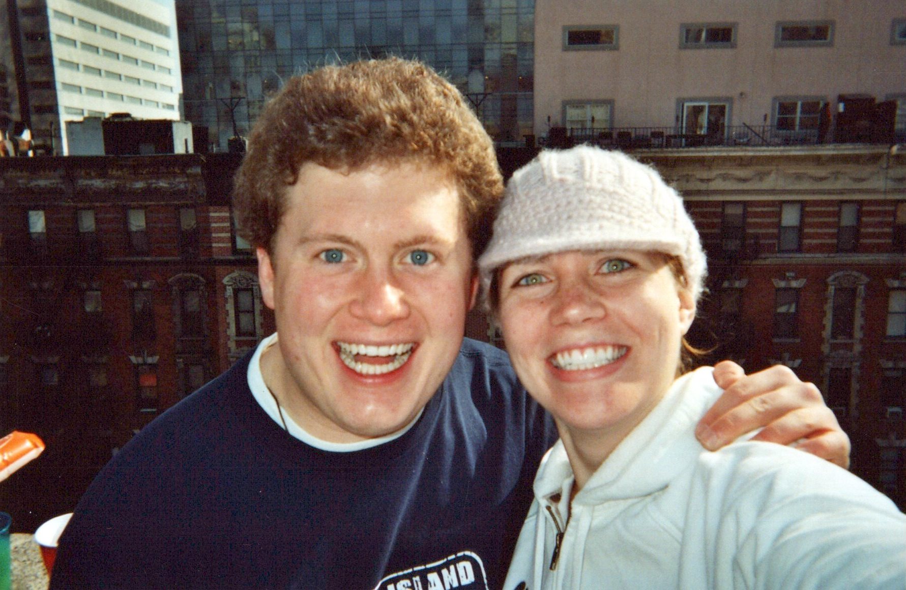 NYC marathon 1st Avenue rooftop spectators Mike and Charlotte