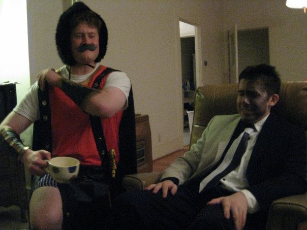 Mike as a Centurion. With a beverage. There was a sword somewhere.