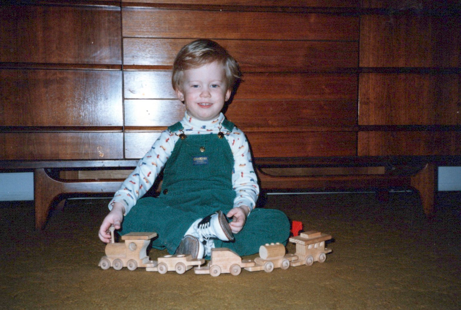 Trains on shirt, Trains On Floor, Overalls and........... bowling shoes.