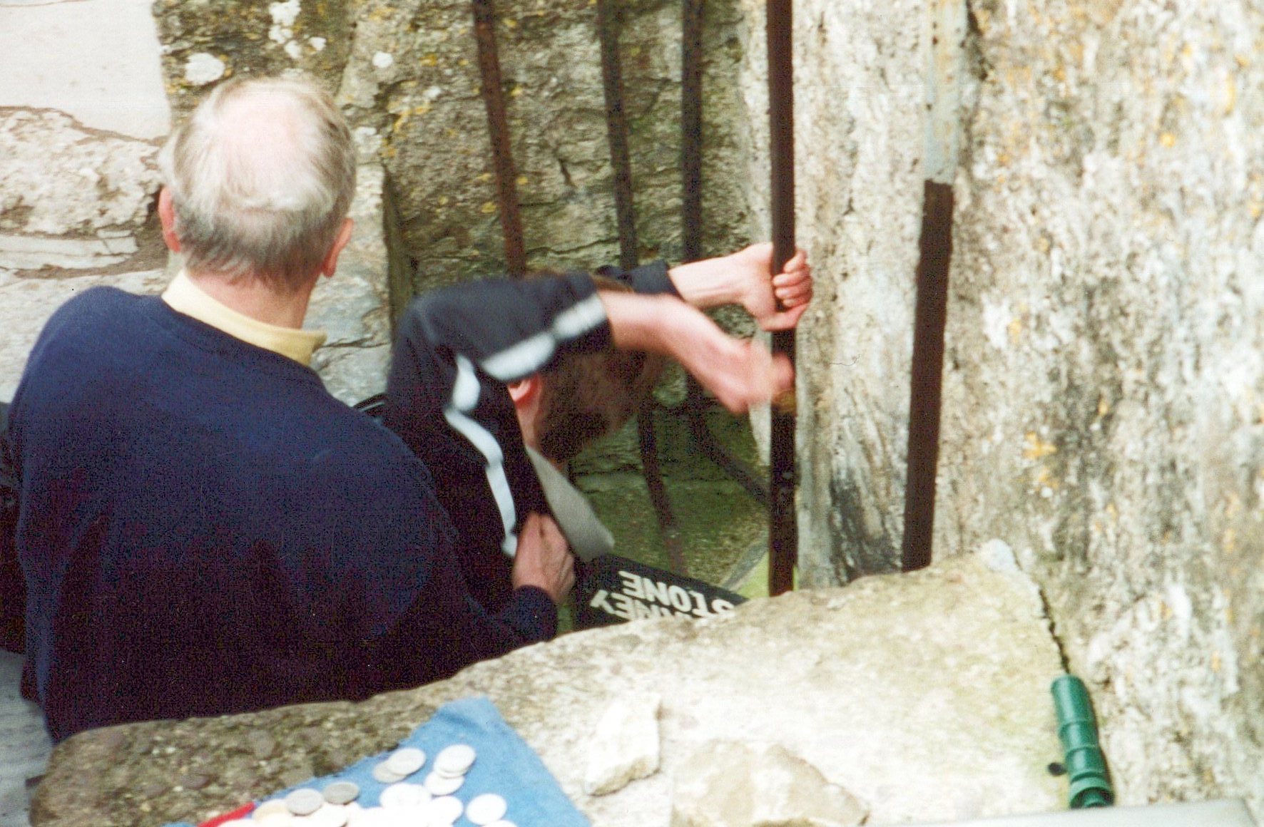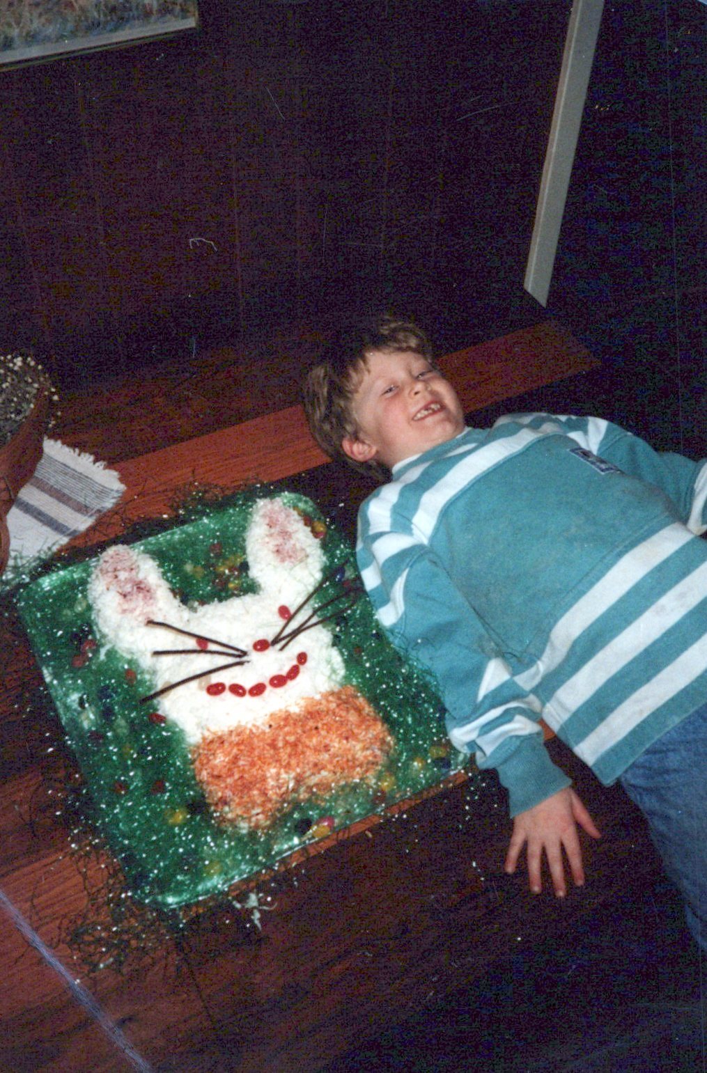 Mike and Bryan with flowers and rabbits and cake in the Tower
